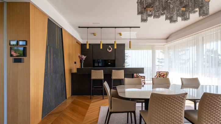 A megrendelő család különböző Magyarországon találkozó kultúrákat képvisel. Néhol tetten érhető ennek különleges íze, főleg amikor esetleg a megszokottól eltérő megoldások, színek, anyagok kerülnek a kompozícióba. Szemünkben, akik ismerhetjük a ház lakóit, azonnal összeáll a kép.